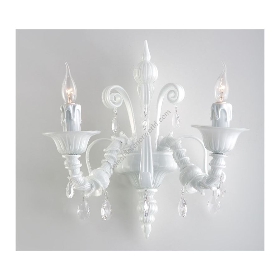 Murano Galss wall sconce White with crystal pendants. Lighting item that diffuses the light with great effect in the surrounding environement creating a warm and welcoming atmosphere.