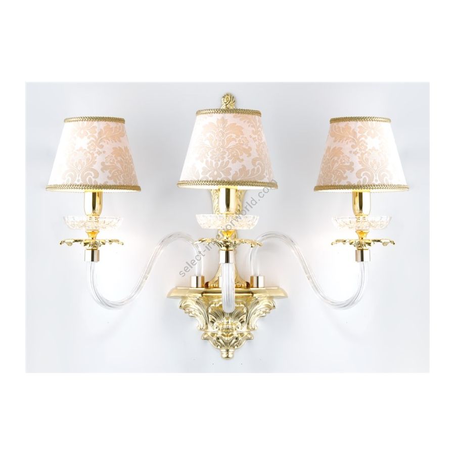 Wall lamp in casting brass and trasparent Murano brackets. Lighting item that diffuses the light with great effect in the surrounding environement creating a warm and welcoming atmosphere.