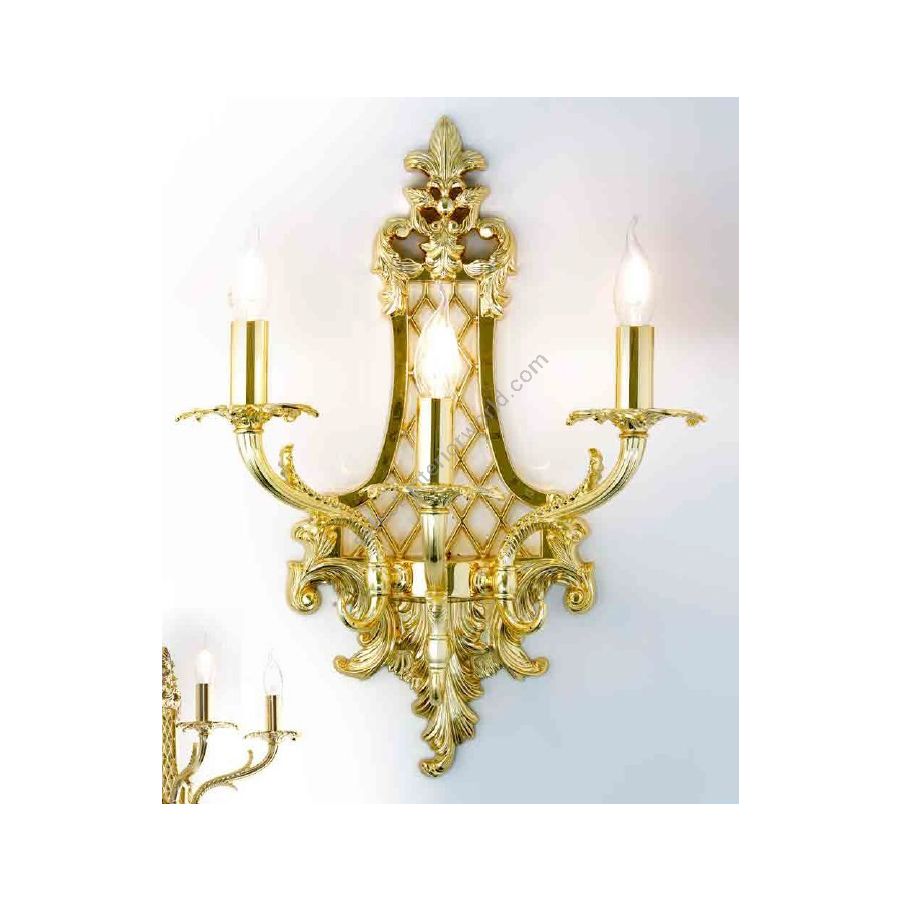 Brass wall sconce. Lighting item that diffuses the light with great effect in the surrounding environement creating a warm and welcoming atmosphere.