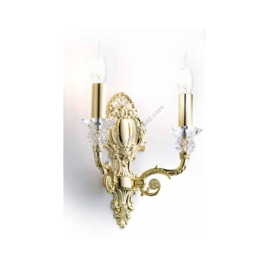Brass wall sconce and Crystal. Lighting item that diffuses the light with great effect in the surrounding environement creating a warm and welcoming atmosphere.
