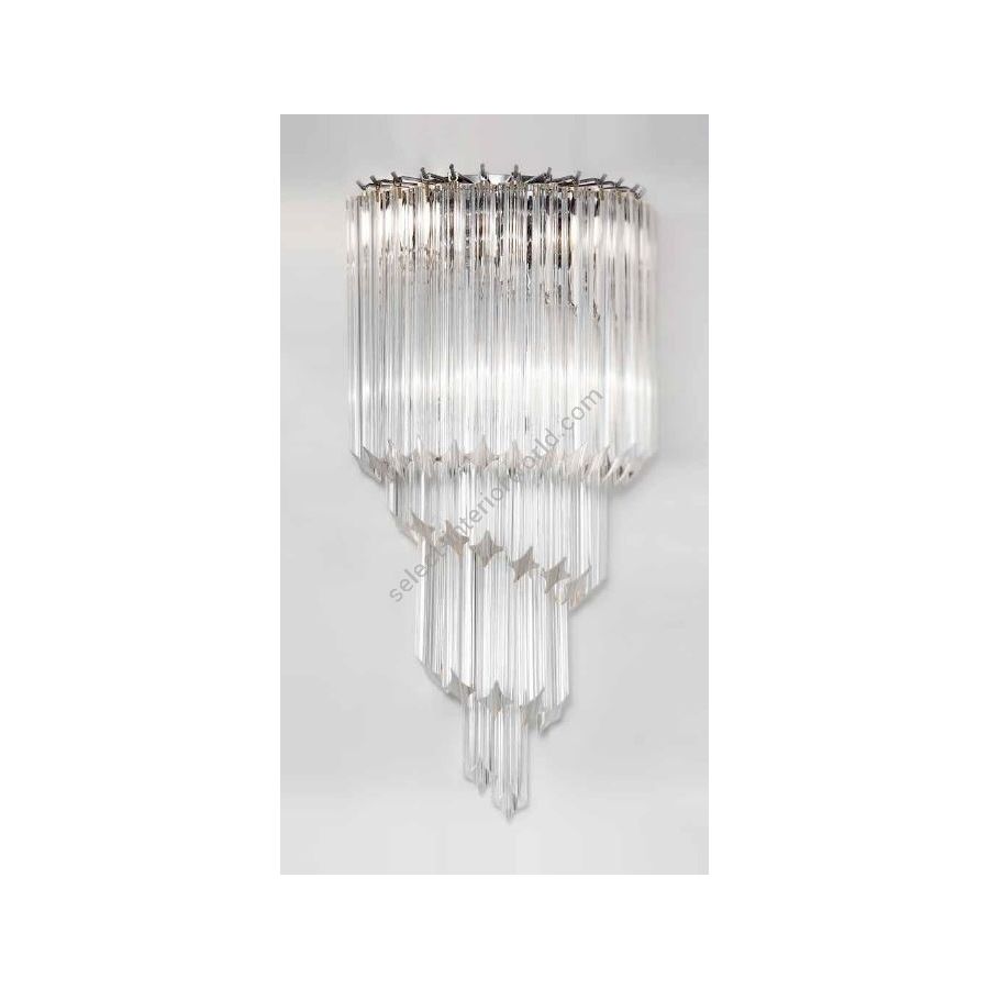 Wall sconce in transparent "Quadriedri" Murano glass. Lighting item that diffuses the light with great effect in the surrounding environement creating a warm and welcoming atmosphere.