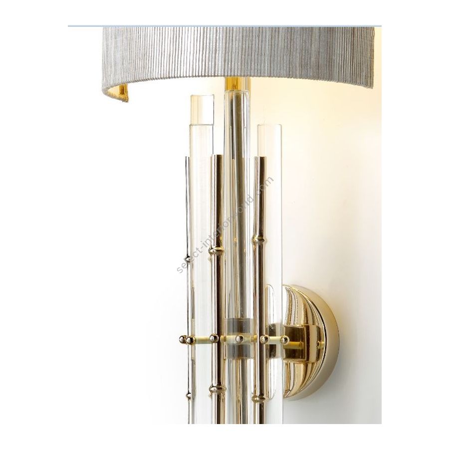Wall Lamp in glass and brass elements in the shape of bamboo with fabric lampshade. Lighting item that diffuses the light with great effect in the surrounding environement creating a warm and welcoming atmosphere.