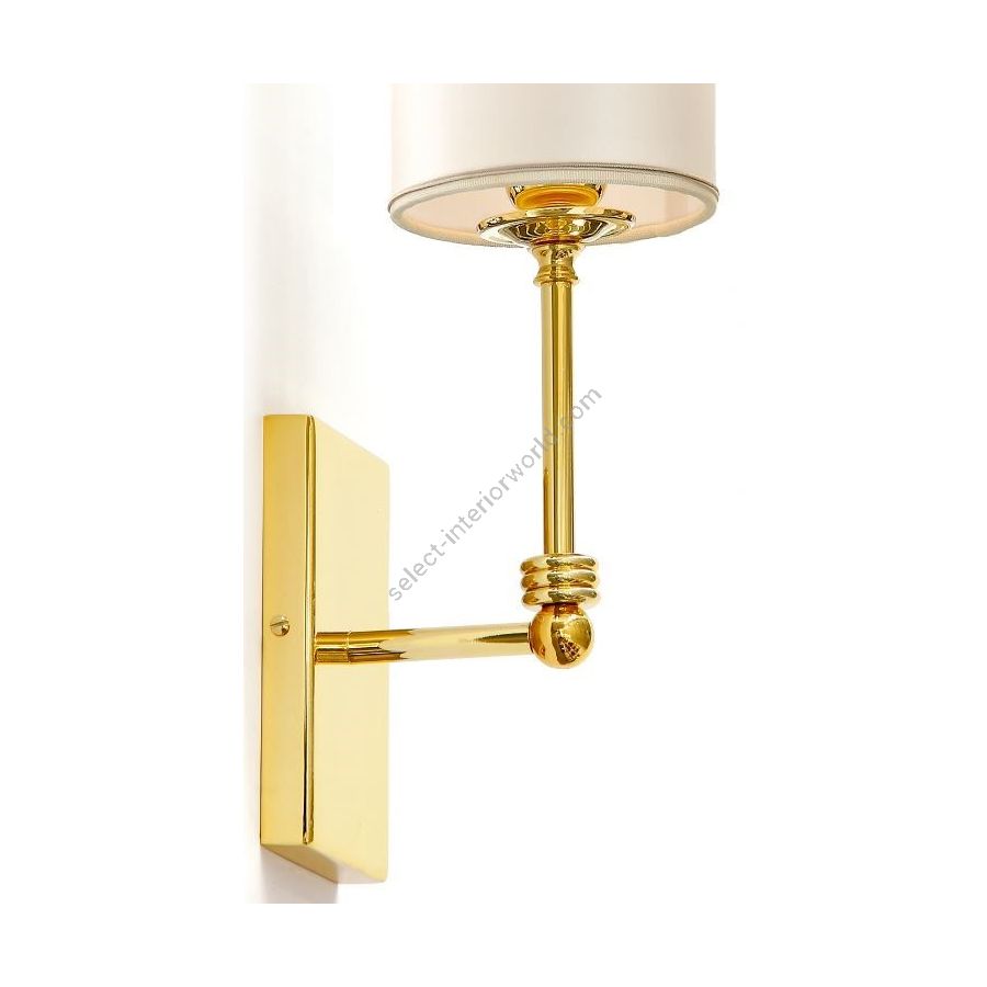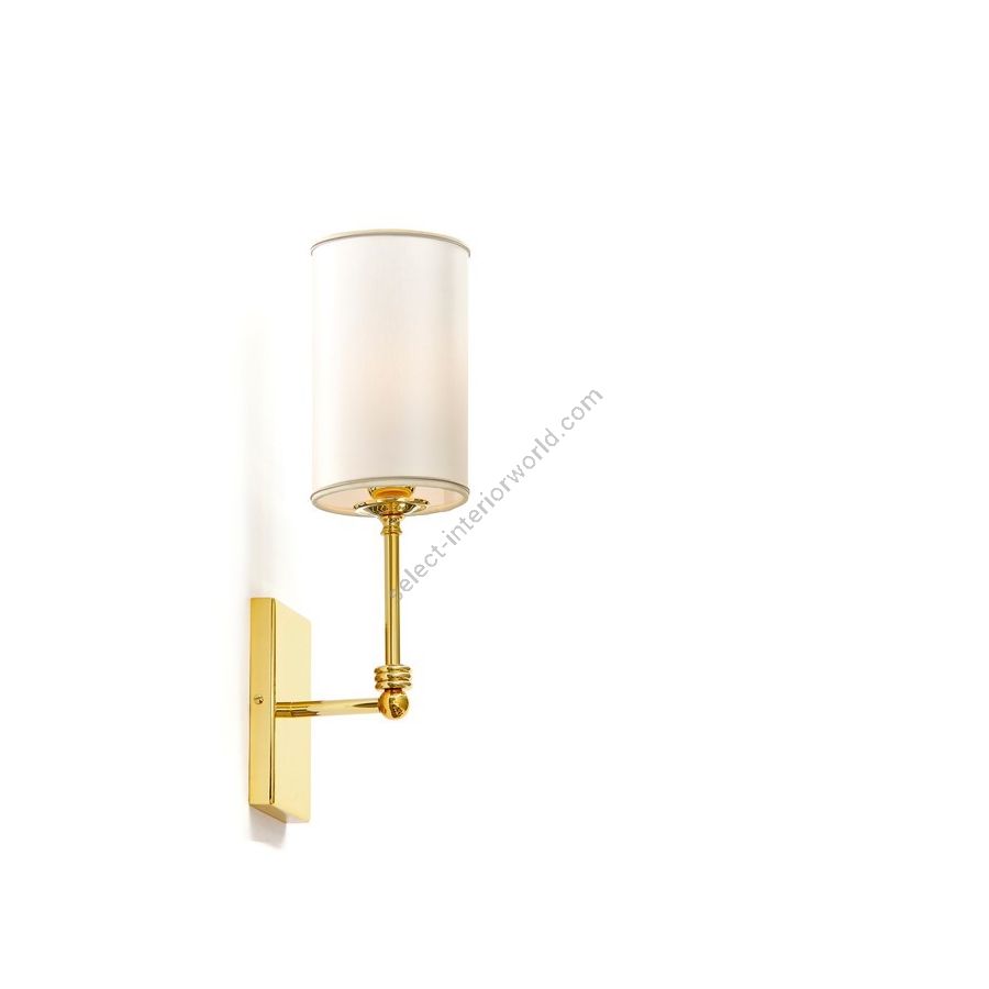 Contemporary polished gold brass wall lamp with shade. Lighting item that diffuses the light with great effect in the surrounding environement creating a warm and welcoming atmosphere.
