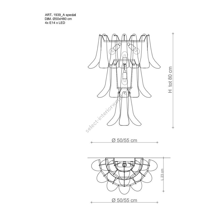 Bulbs: 4 x E14| Dimensions (HxWxD): | cm: 80x55x23 / inch: 31.5"x21.65"x9.06" |