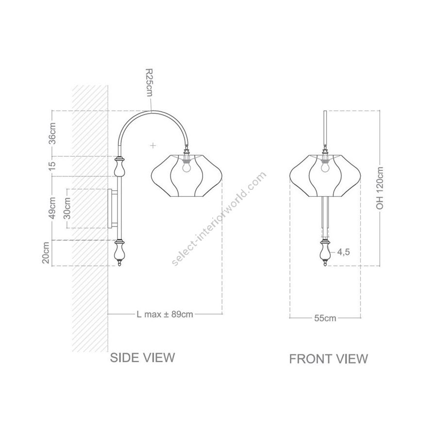 | Dimensions (HxWxD): | cm: 120x55x89 / inch: 47.24"x21.65"x35.04" |
