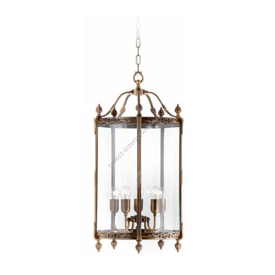 Lantern in cast brass and clear glass. Lighting item that diffuses the light with great effect in the surrounding environement creating a warm and welcoming atmosphere.