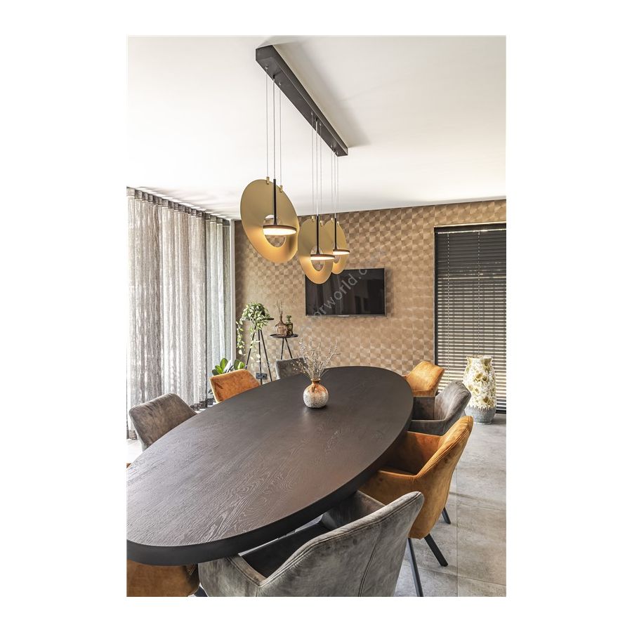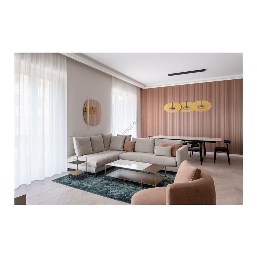 The design of the Eye in the Sky is stylish, minimalistic and completely balanced. This luminary is a real asset for both modern and classic interiors. The oval discs are made of premium anodized aluminum, either in matt gold or matt silver. The collection includes various lighting designs, including ceiling fixtures which are customisable in layout and quantity, and gorgeous floor luminaires.