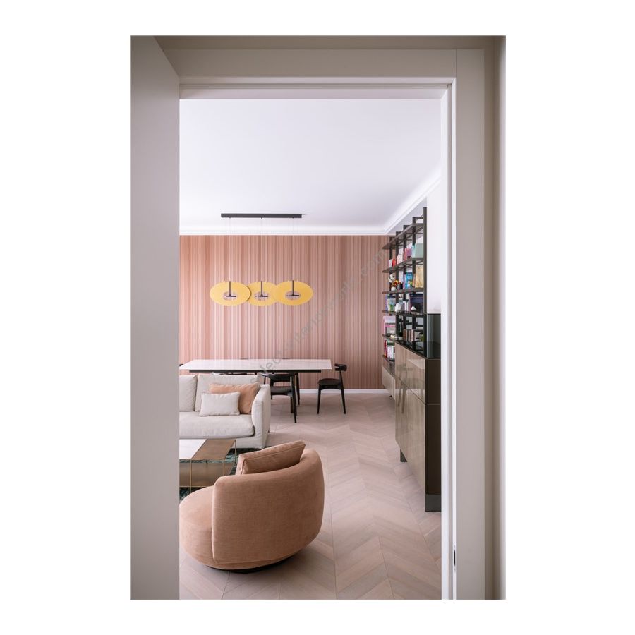 The design of the Eye in the Sky is stylish, minimalistic and completely balanced. This luminary is a real asset for both modern and classic interiors. The oval discs are made of premium anodized aluminum, either in matt gold or matt silver. The collection includes various lighting designs, including ceiling fixtures which are customisable in layout and quantity, and gorgeous floor luminaires.
