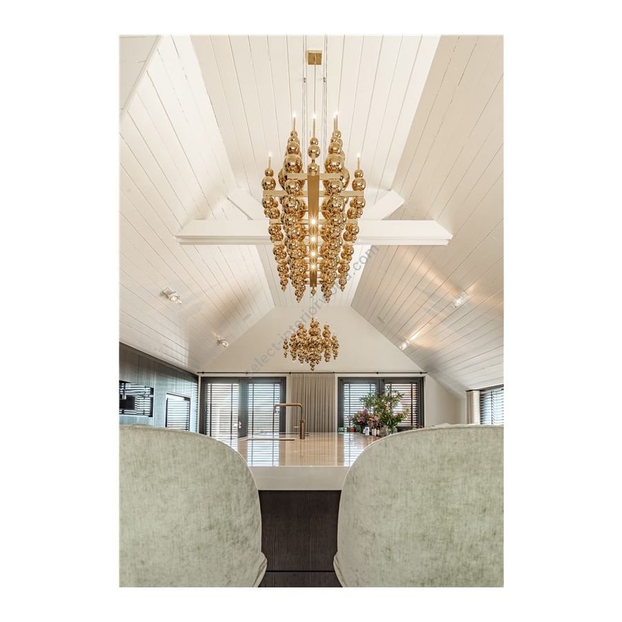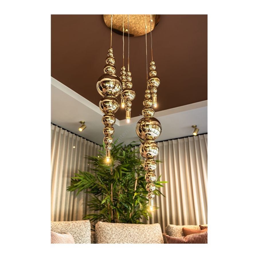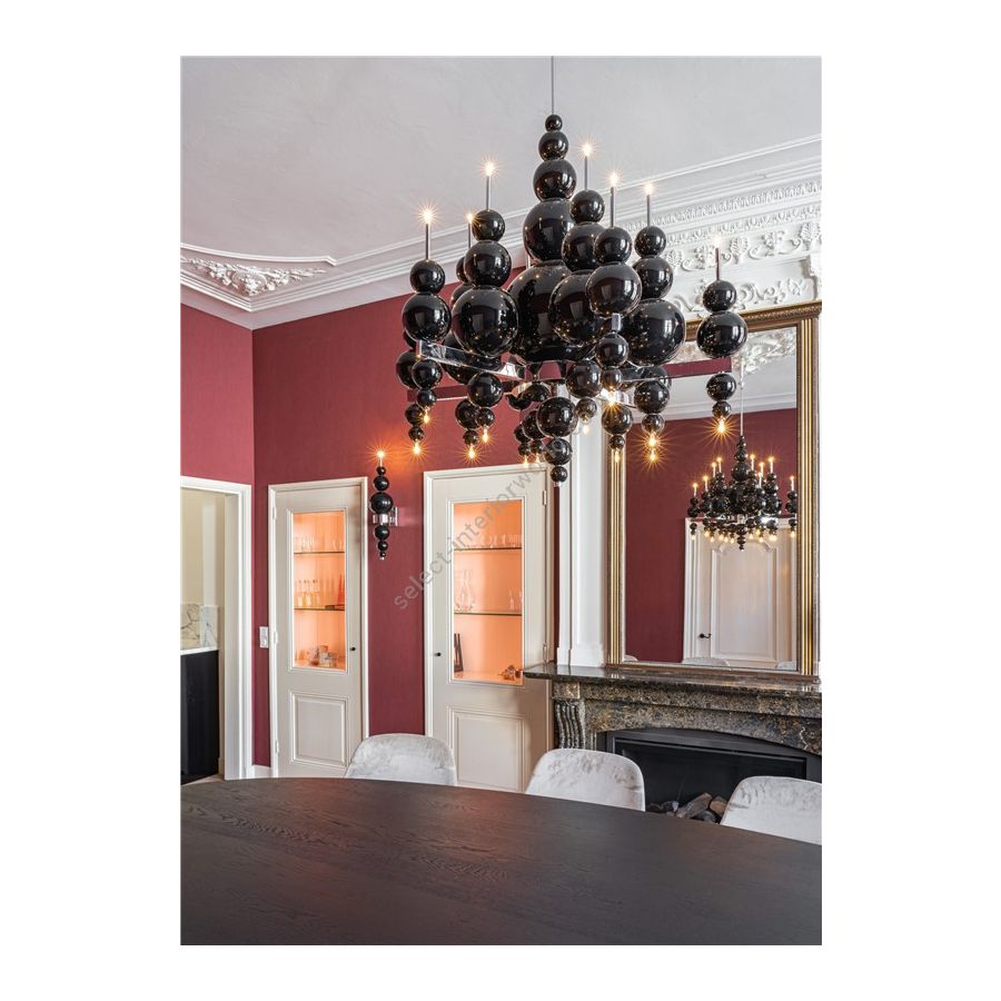 The Tears From Moon collection is able to cast away darkness, referring to the properties of lighting and the actual moon. The collection is the perfect combination of European high-quality materials and an eccentric design, handmade by specialists. Mouth-blown glass is customizable in different sizes and colours. Every colour and combination creates a different atmosphere. The glass is to be combined with refined metalwork in various finishings and either up- or downlight, or both. In addition, there are several options with details in glass, which can give the lighting an extra luxurious look.