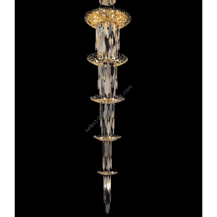 The regalness of gold and interwoven metal come together with Murano glass leaves to deliver highly prestigious decorative effects.