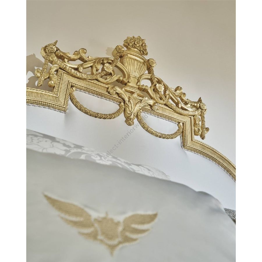 Couronne is a classic French-style bed that epitomizes Jumbo Collection heritage. The bed showcases meticulous attention to detail, expert craftsmanship, and opulent materials. The grand headboard, hand-carved from beechwood and adorned with a patinated antique gold finish, enhances the graceful contours of the bed. A piece of furniture exuding an air of elegance and sophistication, the ideal choice for creating a regal and lavish ambiance in the bedroom.