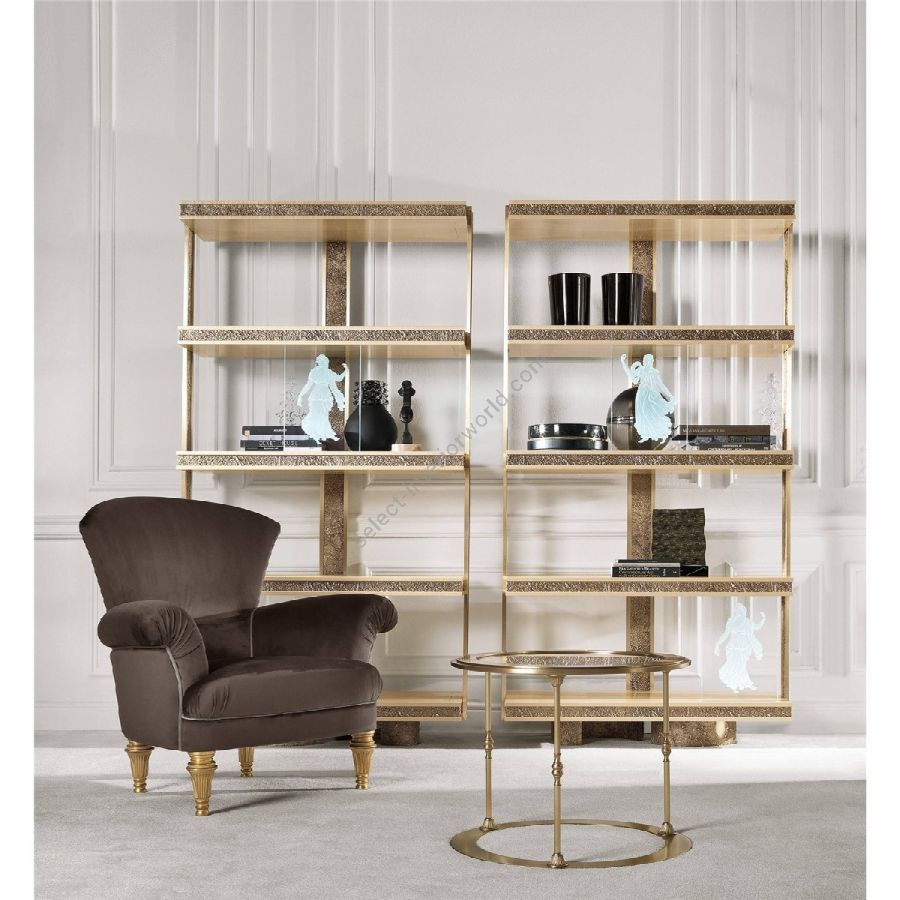 Characterized by sculptural shapes, the furniture of the Shinto line combine the essence of classic style with a contemporary allure. They are distinguished by an original combination of materials, including natural maple, precious marble and brass casting. The parts in brass castings, with their materic appeal, contrast with the shiny component in onyx or marble, enriched with refined decorations in gold leaf. All the pieces are characterized by an important artisanal component: the manufacturing mixes the use of experimental techniques with traditional methods handed down for centuries.