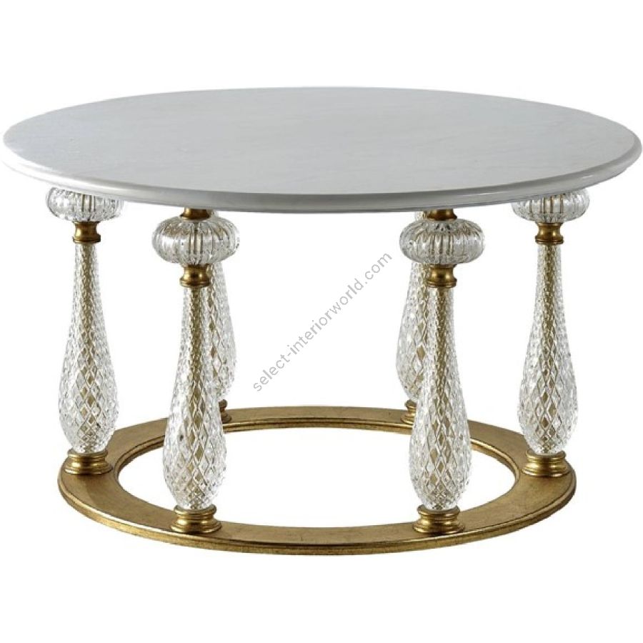 A celebration of purity and radiance, Crystal central table pairs the ethereal beauty of crystal columns with the grace of white and gold. The top in marble rests upon a metal structure enriched by turned brass details and an antique gold finish. With its luminous palette and precious materials, this table brings a sense of delicate opulence to any interior.