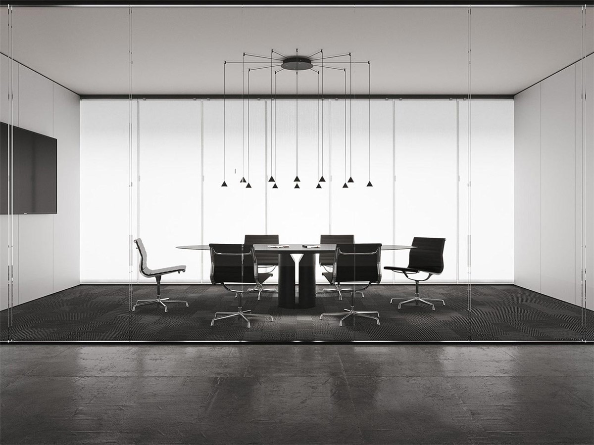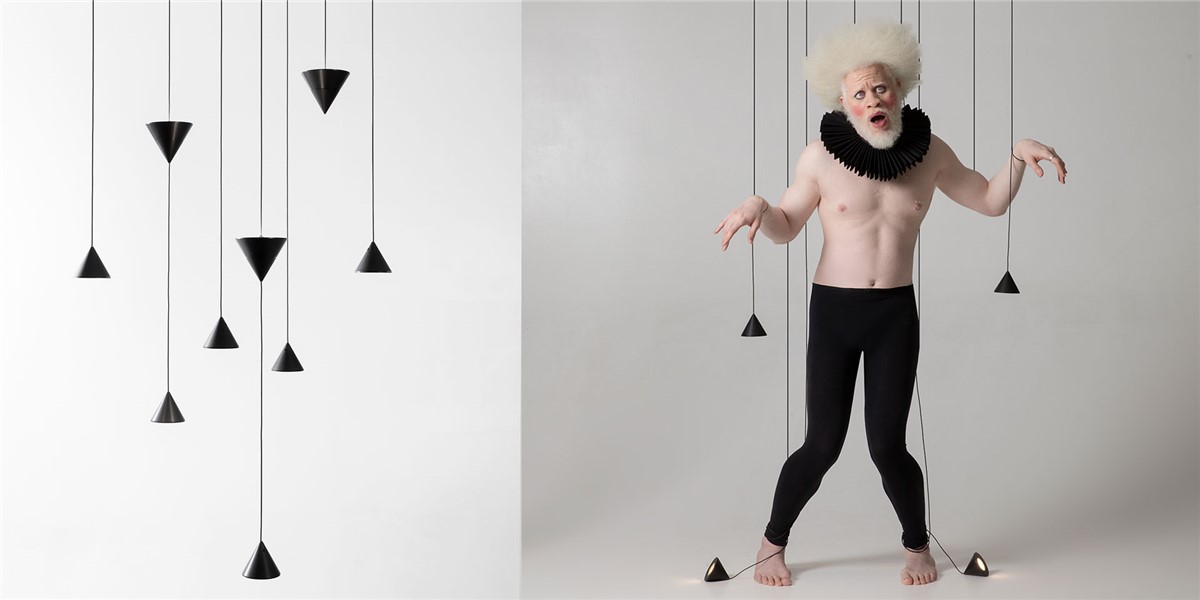 Filomena is a system of suspensions and appliques that unfolds from a simple little cone of black aluminum.