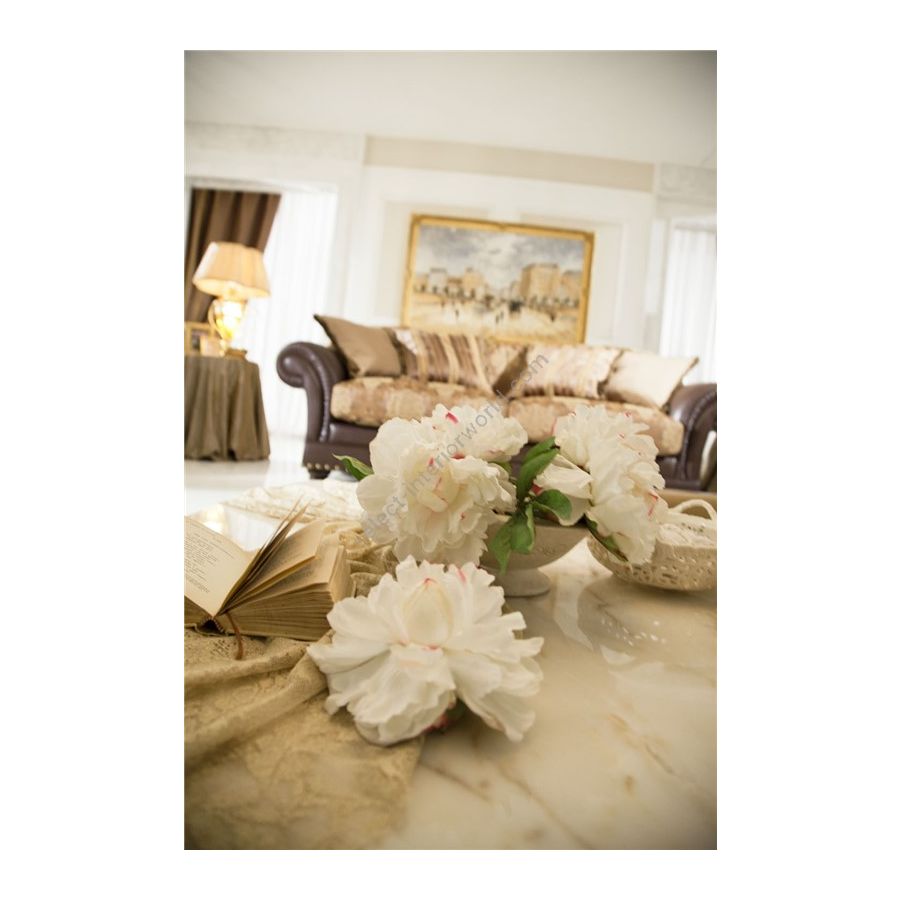 Its timeless classic line, its refined handmade details and elegant voluminous backrest, wide armrests and spirals in a fine plissé finish.