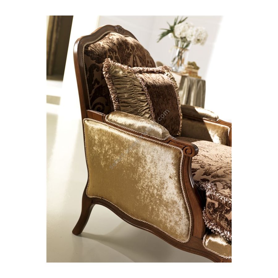 Technical description Armchair with a semiremovable seat covering. Beechwood structure with hand-carved parts. Non-deformable polyurethane foam cuschion. Pillows with goose feathers. Golden, silver or copper leaf is available upon request at extra charge. Data sheet