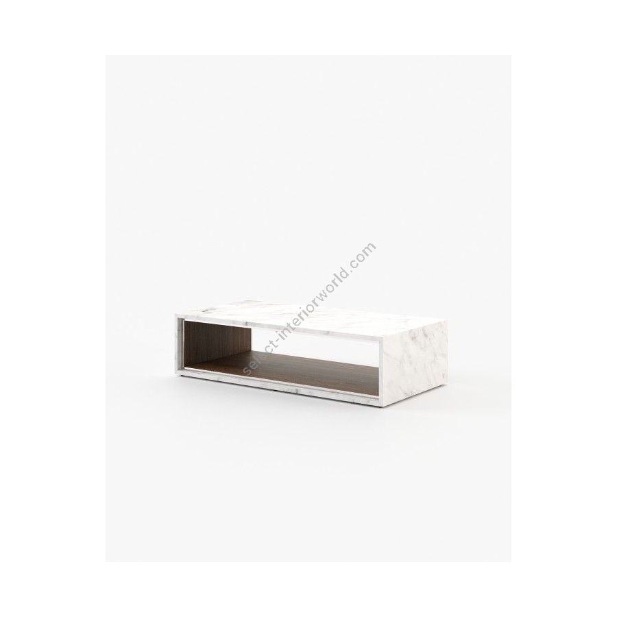 The Nilo coffee table is a unique and modern addition to any space, featuring a solid natural marble surface and sturdy wooden or lacquered interior.