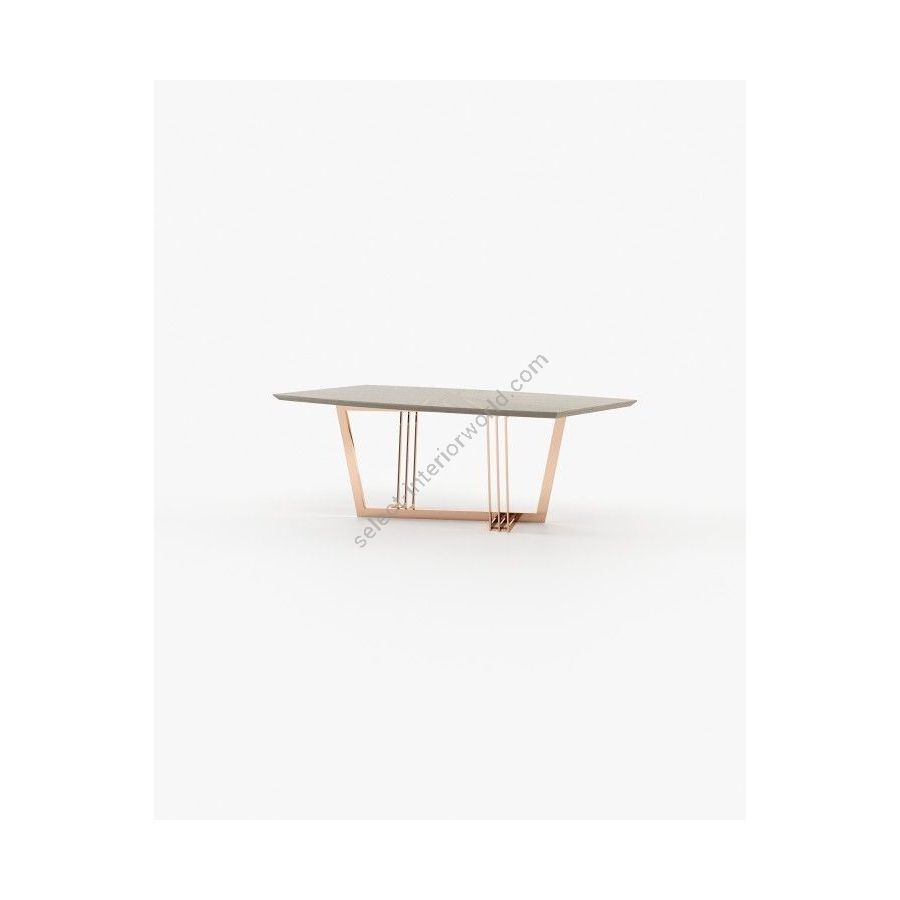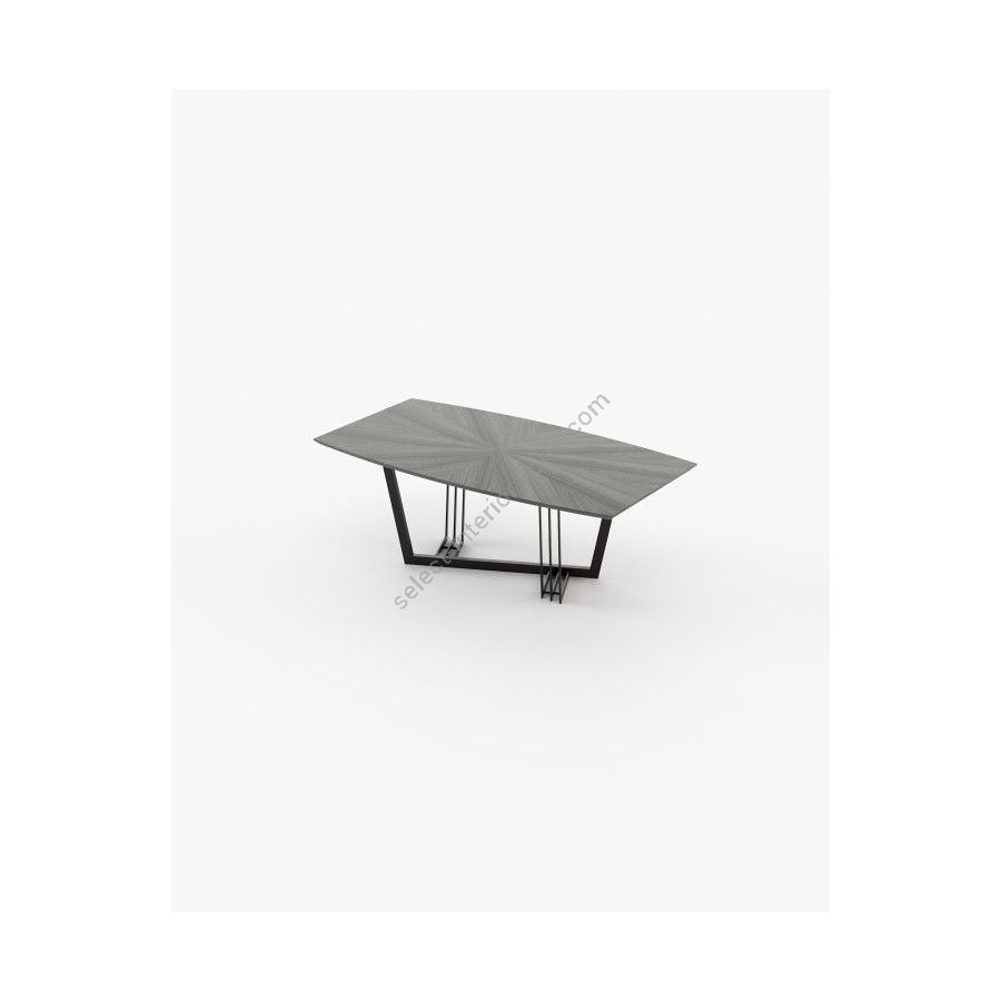 The D'Arc dressing table is a sophisticated choice, combining smooth wood and striking metal, with five drawers, a round mirror, and a large surface area.