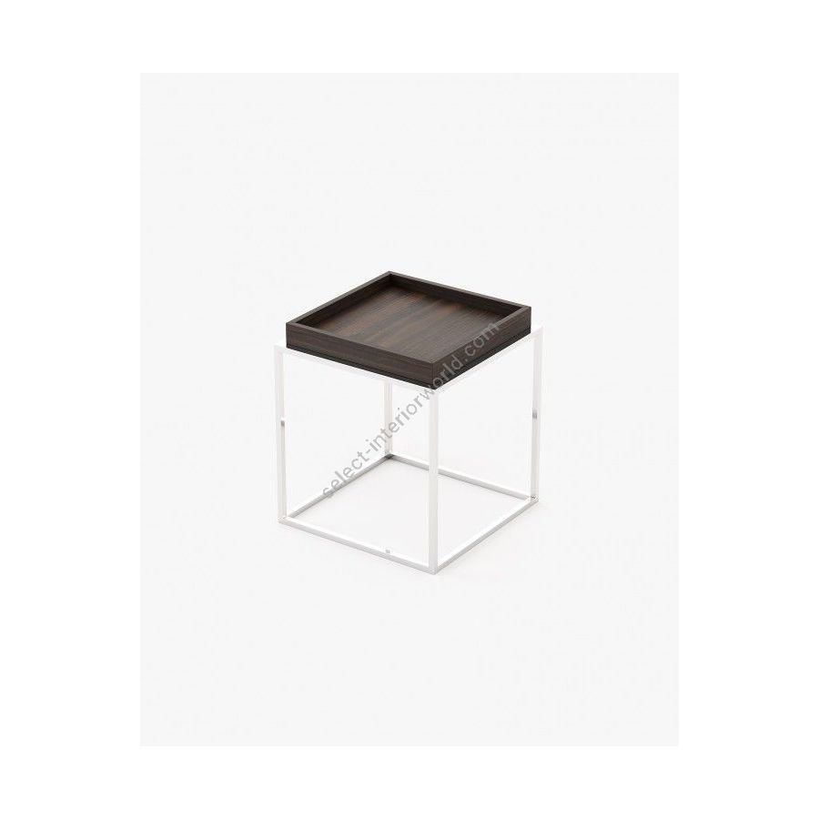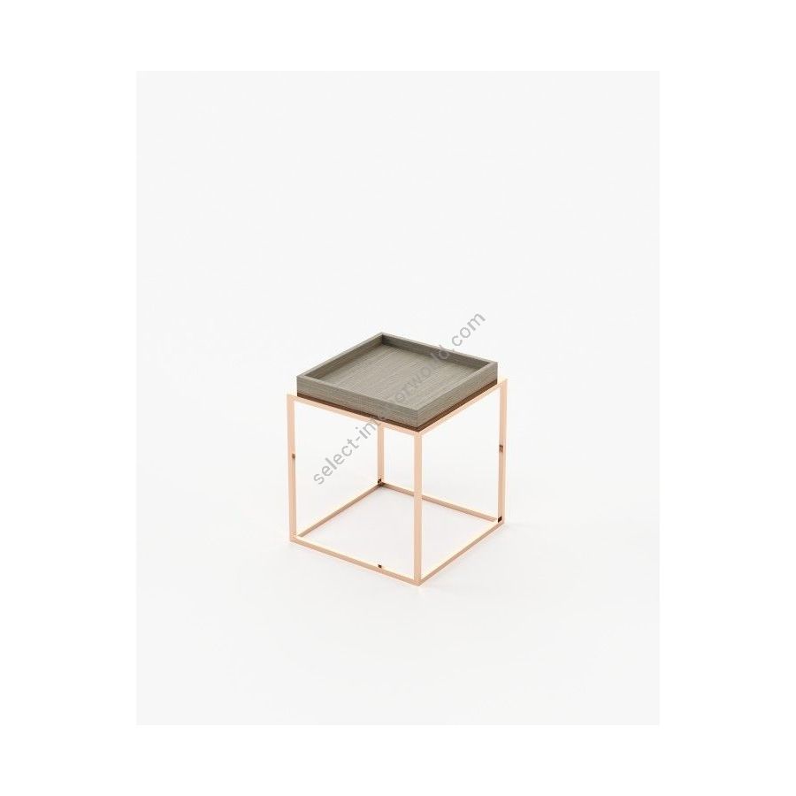 The Aura side table is an elegant home accessory, featuring a striking square shape and a natural wood finish, fitting any decor style.