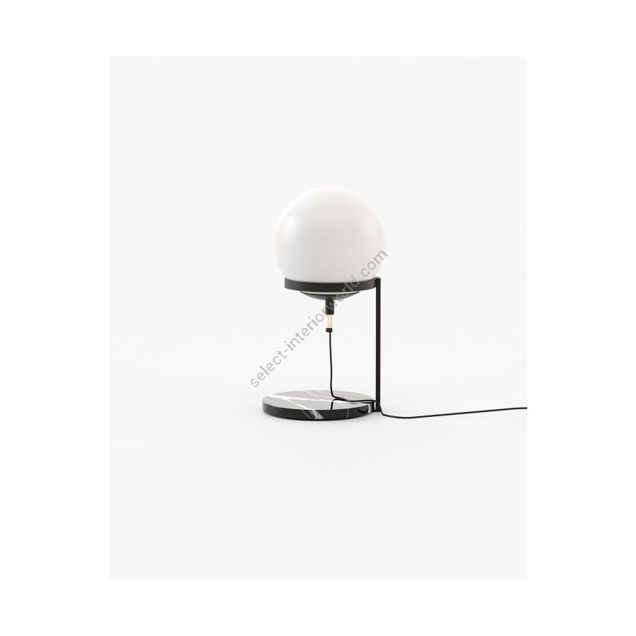 The Clarke table lamp is a true statement piece, featuring a large spherical glass shade that sits atop a solid marble base. This stylish lamp adds a touch of luxury to any room, whether it be in the hallway, office, or living room.