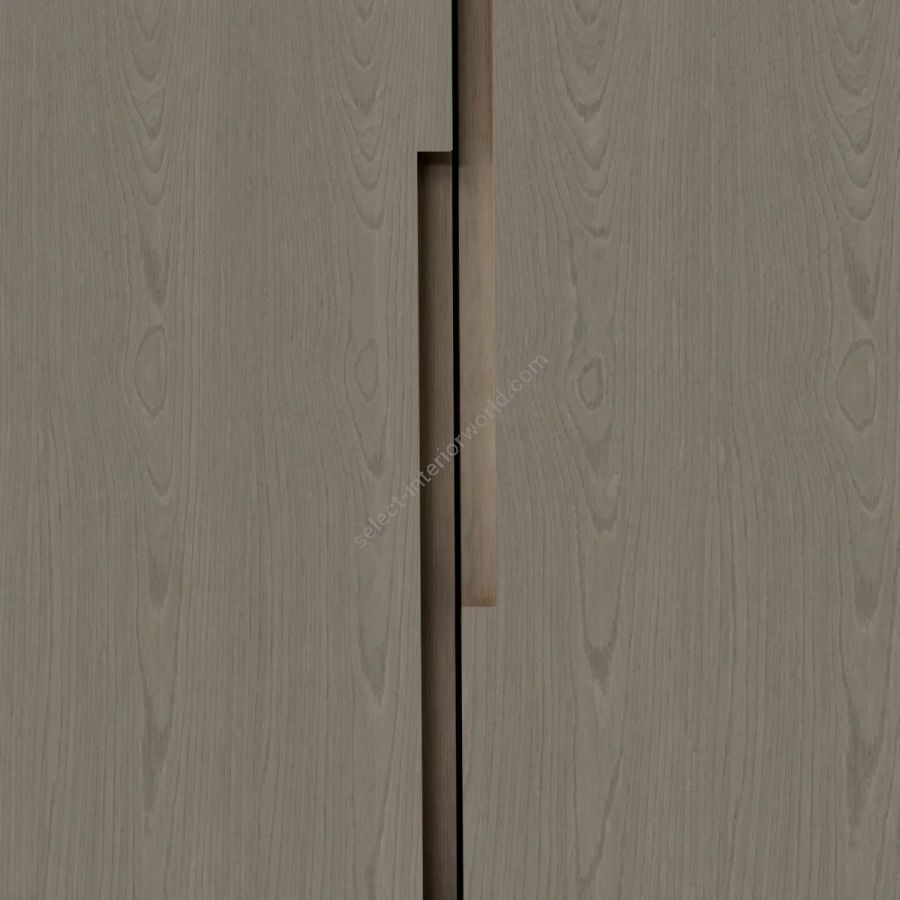 Cabinet system for the living area in plain wood with horizontal or vertical grain. Available in modules of different sizes, with customized niches and accessories, and with integrated LED lighting.