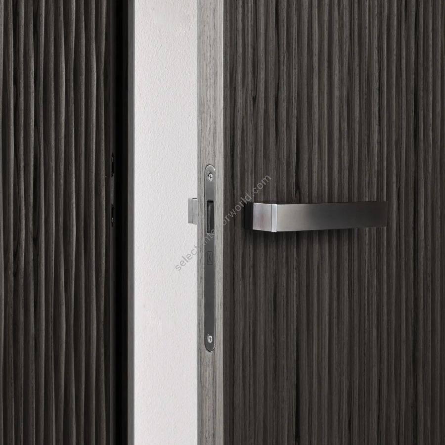 Available in custom sizes, with 'Slim' jamb, with central panel in glass, and integrated into boiserie systems. Available in all wood essences from the collection, and in aniline-dyed oak in all RAL/NCS colours.
