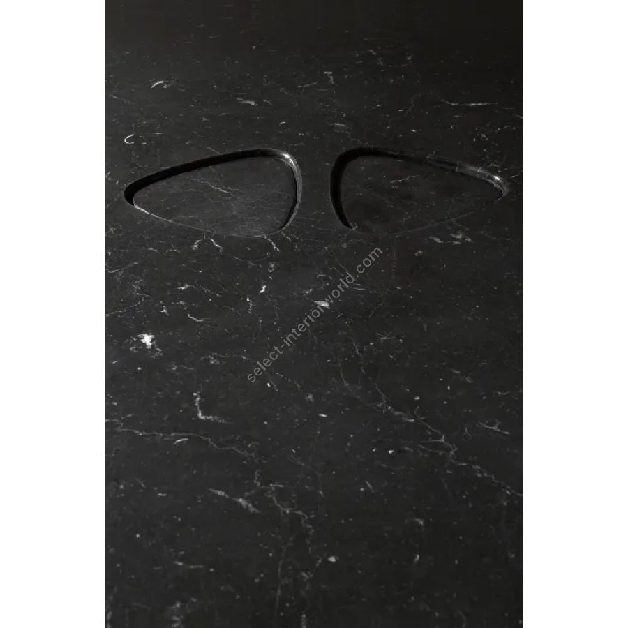 Available in the rectangular or round version, it can be customized in Bianco Calacatta, Nero Marquina and Bianco Carrara marble.