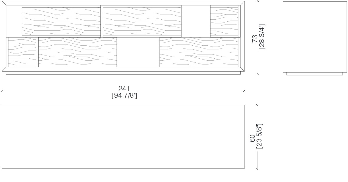 Double-sided sideboard available in all the wood essences of our collection, equipped with structure in plain wood and with custom modular elements with drawer.