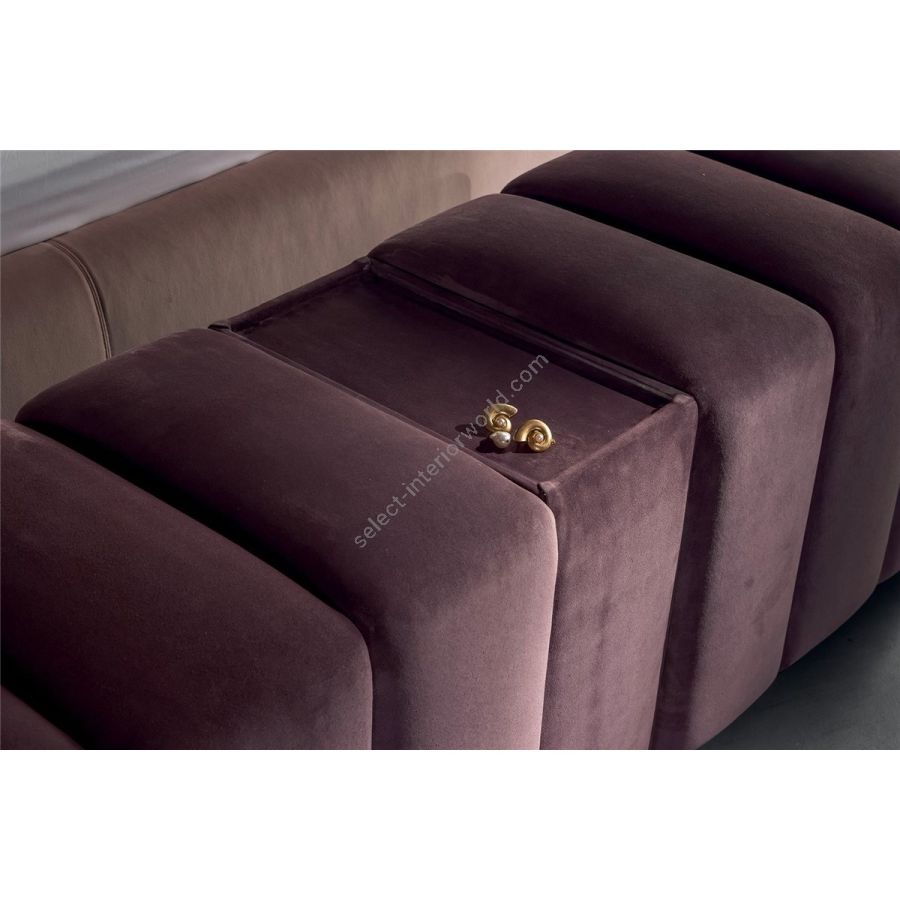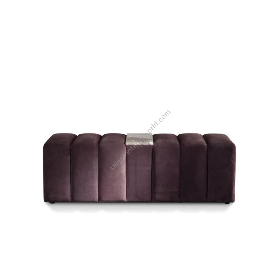 Particular padded bench, with wooden structure covered in double density polyurethane foam. A marble top, available in the following finishes from the catalogue, is placed in the centre. Leather and fabric upholstery are NOT removable.