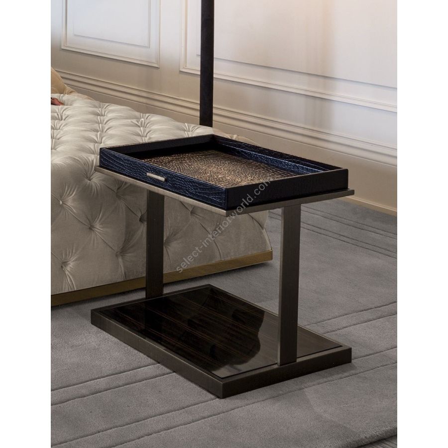 A collection of rectangular and square small tables with a common metal skeleton holding the top, with an elegant removable tray, and a lower shelf in wood. Louis small tables have a great potential of expression, all centred round the combination of the finishes in wood, metal, leathers and velvets that can be used to create infinite compositions.