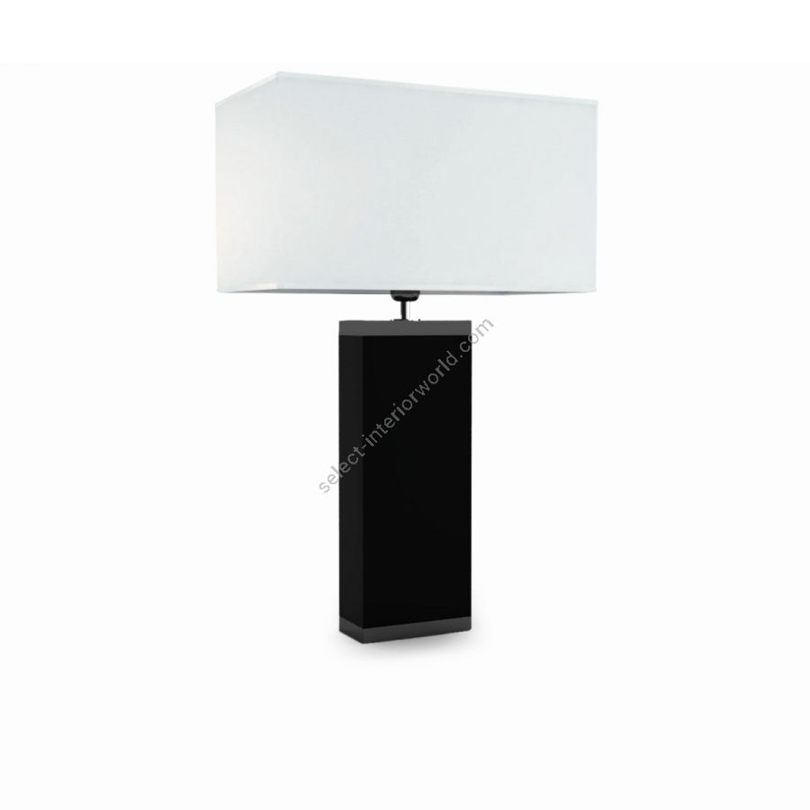 Its composition with marble base and brass details in black nickel finish and rectangular lampshade in white fabric, creates a contrast of colors and a harmony of shapes that enhance the component with a valuable and captivating aesthetic. Available in various colors.