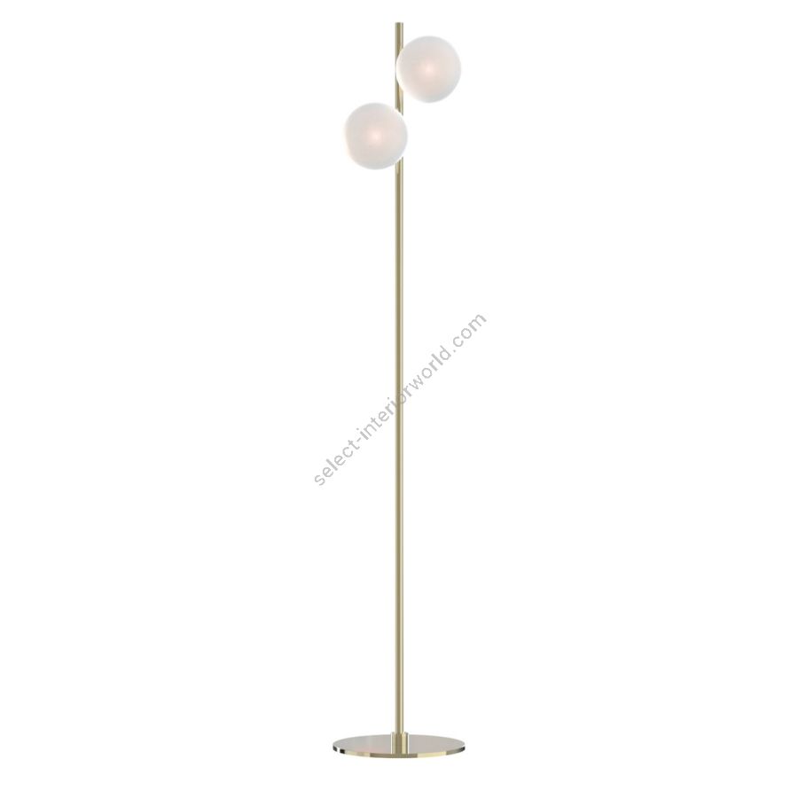 Composed of a stem and round base in brass with a light gold finish and two glass spheres, this product will be able to make any type of environment unique and stand out.