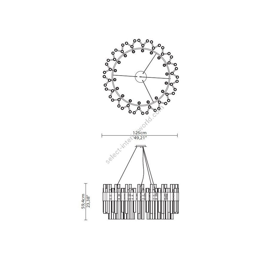 A powerful creation characterized by a circular shape made with gold plated brass combined with ribbed fine tubes of glass. The perfect combination of a glamorous sensation of waterfalls.