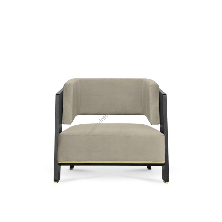 Galea is a glamorous armchair that blends the ancient with the modern. It draws inspiration from the helmet worn by warriors in the Roman Empire and is brought to life through traditional production techniques. The result is a modern armchair made of brass, wood, and velvet, whose elegant silhouette ensures that it is perfect for luxury residences or any hospitality project.