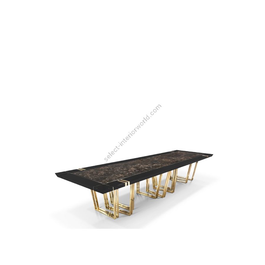 With its impressive 4-meter size, the Apotheosis XL Dining Table becomes the focal point of any dining room decor with its Greek mythology inspiration and modern lines. This combination of high-end materials such as brass, wood, and Emperador marble creates a striking visual impact on any project.