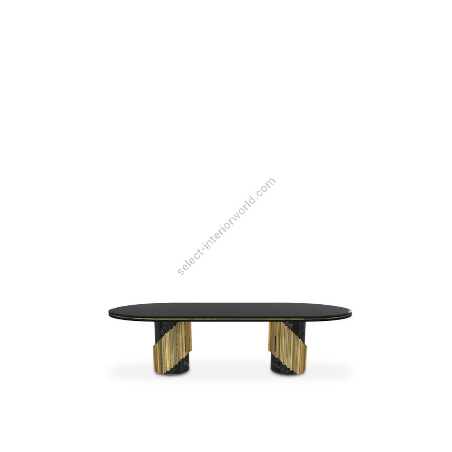 Experience the alluring charm of the Littus Oval Dining Table, renowned for its strong style and sculptural elegance. This modern dining room table showcases the unparalleled artistry of LUXXU's craftsmanship. With polished brass, black lacquer, and Nero Marquina marble, it is a true masterpiece of luxury and sophistication for any interior decor style.