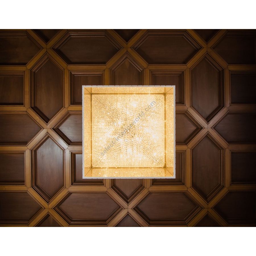 Deep Sky is an attempt to grasp the infinity of space, composed of crystals augmented by their own reflections. This endless mass of twinkling stars is only visible from below, within the solid mirror box structure concealing a sparkling multitude. Available in 18 standard sizes for different architectural spaces, Deep Sky is the most versatile and popular chandelier in the Personal Universe Collection.