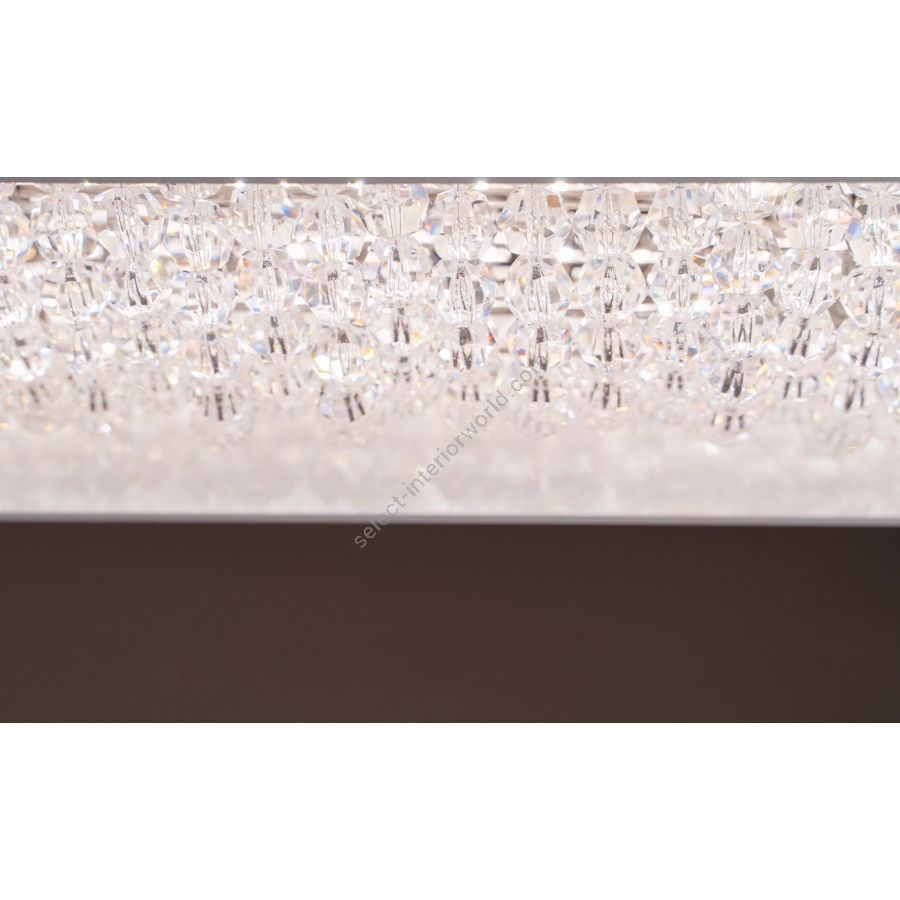 The Géode crystal chandelier features crystal beads encased in a modern geometric design. Crafted with the utmost attention to detail, this luminaire combines a sleek exterior with sparkling crystal elements inside. The unique geometric casing adds a contemporary touch, making it an ideal addition to modern interiors. The warm, inviting LED light seamlessly integrates with smart home systems, creating a cozy and luxurious ambience in your space.