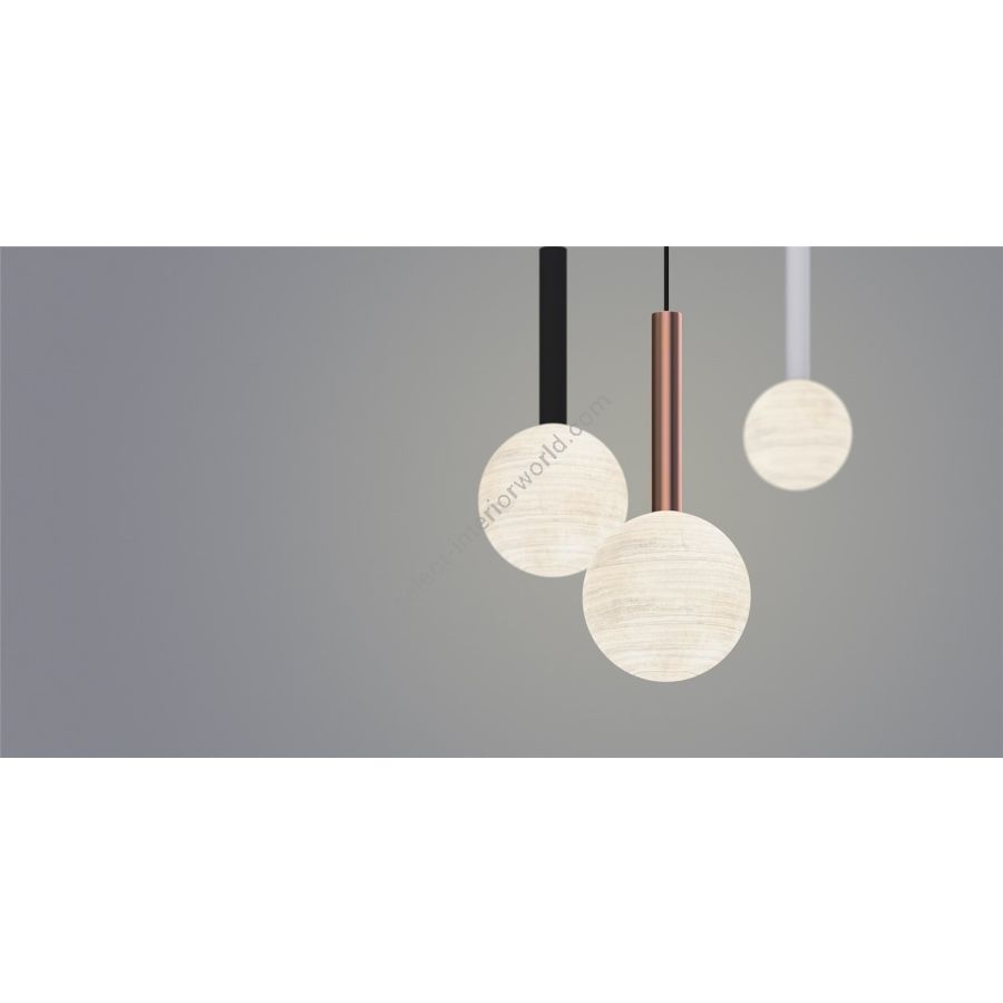 Moonrise is an elegant pendant lamp crafted from premium onyx stone, selected for its distinctive patterns and natural translucence. Its smooth, rounded form evokes the surface and soft glow of the moon. A concealed, downward-facing LED light source casts a warm light through the stone, creating a welcoming atmosphere in any interior. Moonrise is ideal to display alone or in clusters of varying sizes, and it also pairs beautifully with other models from the Onyx Collection. Whether featured in residential or hospitality settings, Moonrise adds a touch of natural beauty and refined sophistication