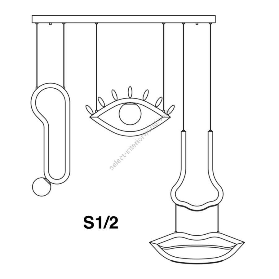 - Metal structure and white Murano triplex glass diffuser.