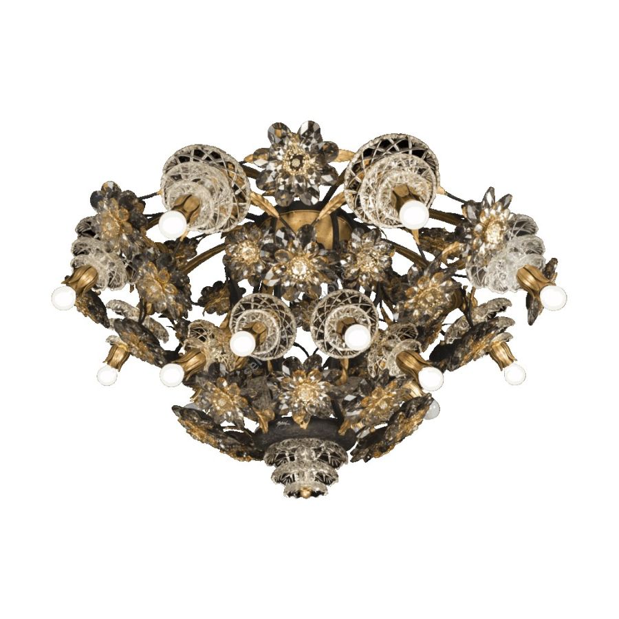 16 lights + 1 led chandelier in wrought iron with coloured Bohemian crystal and biscuit ceramic