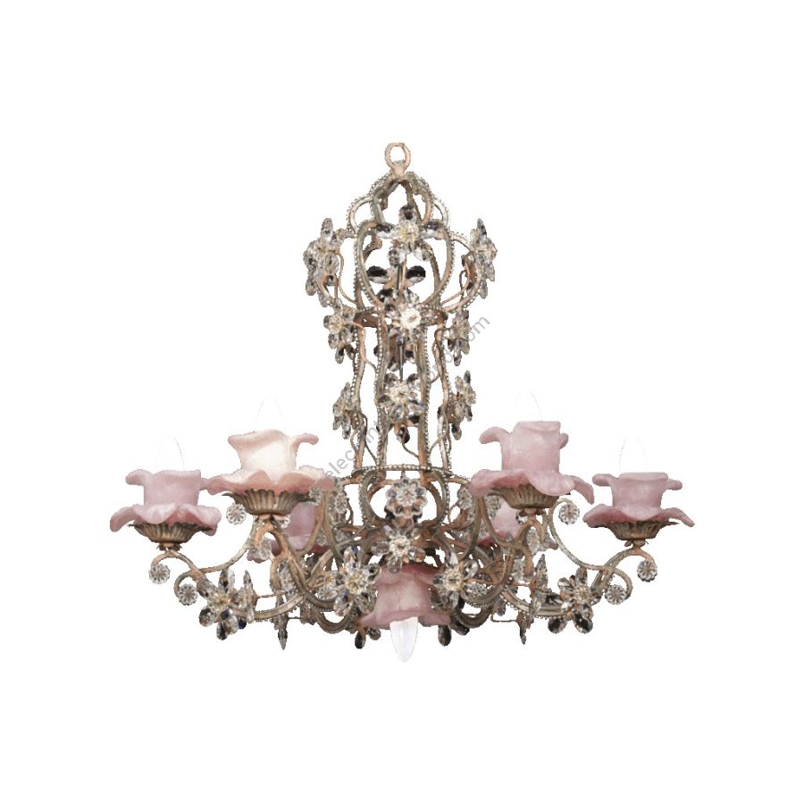 7 lights chandelier in wrought iron with clear Bohemian crystal, Murano glass and crystal strip