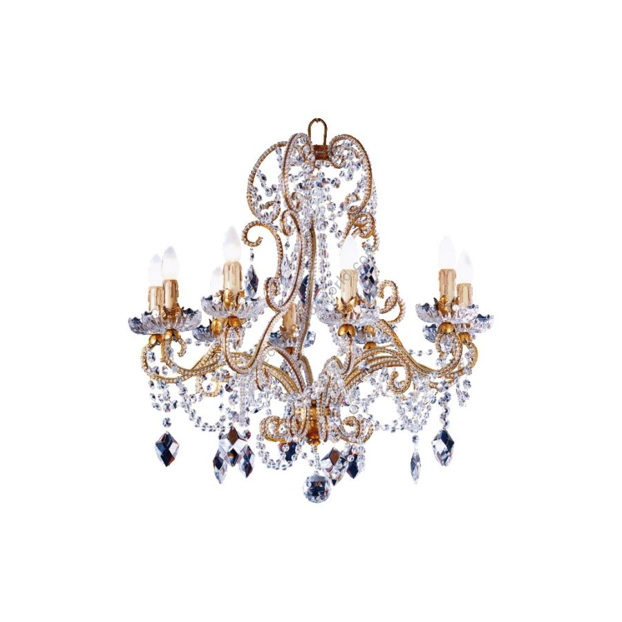 10 lights chandelier in wrought iron with clear Bohemian crystal and clear pearl banding