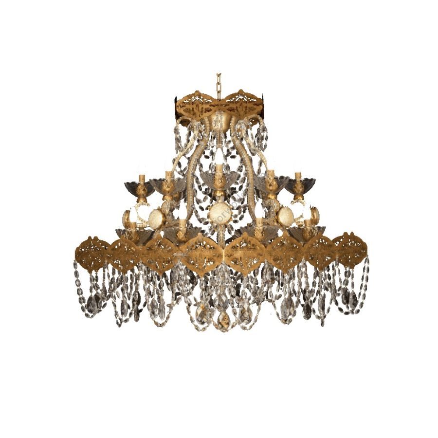 16 lights chandelier in wrought iron with clear Bohemian crystal, clear pearl banding