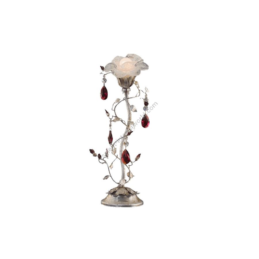 1 light table lamp in wrought iron with colored Bohemian crystal