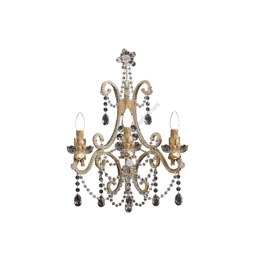 3 lights wall lamp in wrought iron with clear Bohemian crystal and clear pearl banding