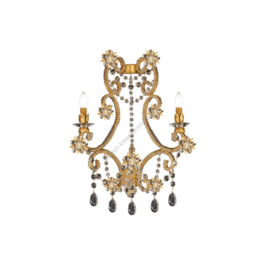 2 lights wall lamp in wrought iron with clear Bohemian crystal and clear pearl banding