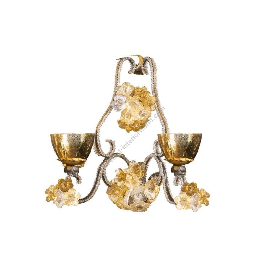 2 lights wall lamp in wrought iron with Bohemian crystal, Murano glass and clear pearl banding