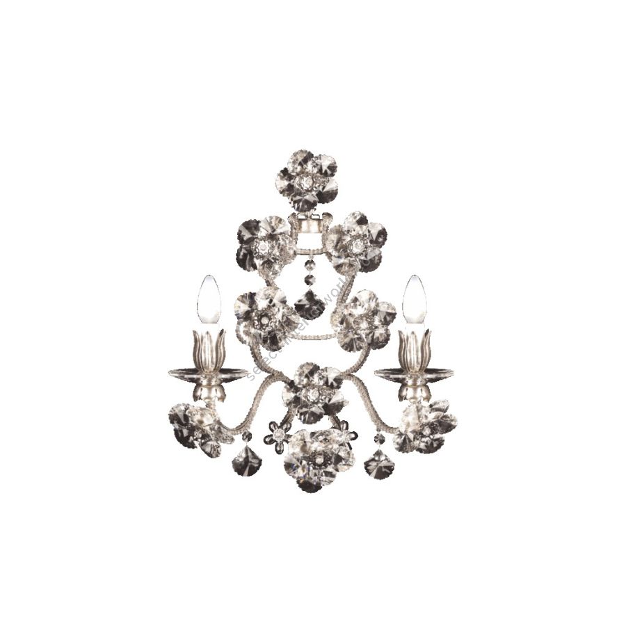 2 lights wall lamp in wrought iron with clear and colored Bohemian crystal, porcelain, clear Bohemian pearl banding