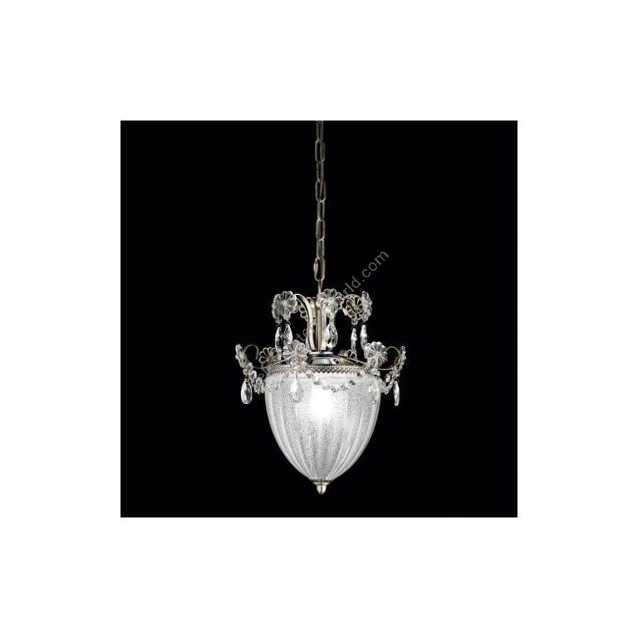This range is realized in metal enriched with a silver and gold leaf finish and with blowned murano glass. Pleasantly enriched with crystals that gives light and brightness.
